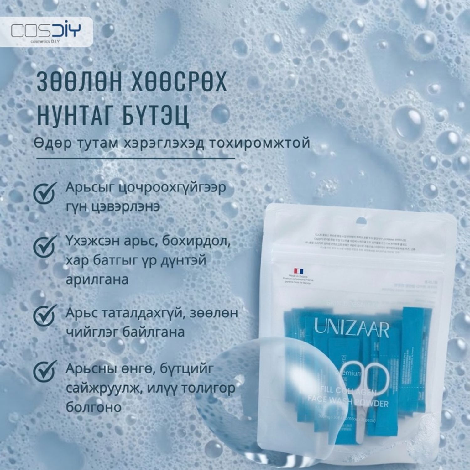 🫧 Зөөлөн хөөсрөх нунтаг бүтэц