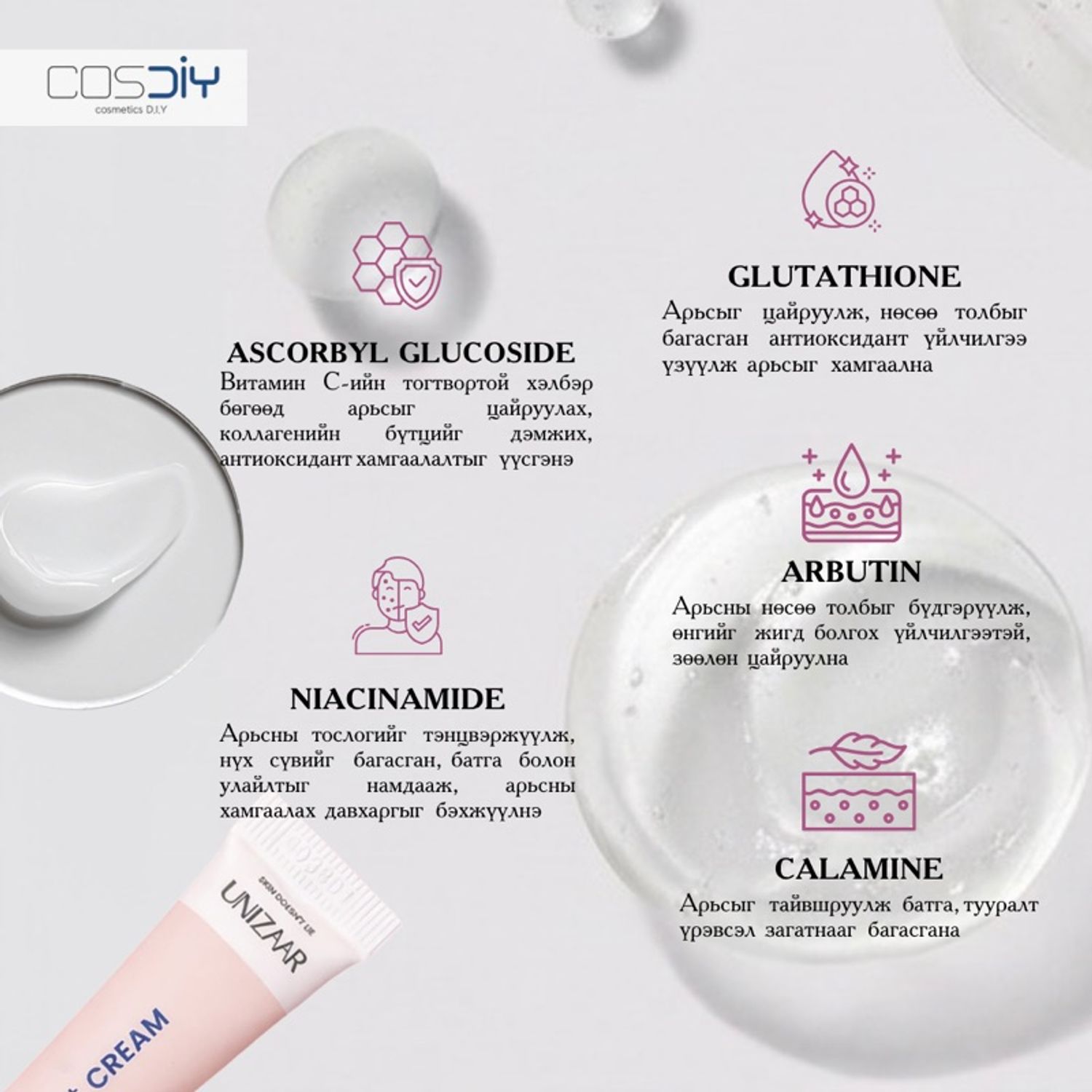 Хэрэглэгч нар маань сайн мэдэх байх cosdiy бүтээгдэхүүнүүд маань цэвэр 100% найрлагатай, арьсанд хэрэгтэй гол найрлагаа шууд fresh- ээр нь задлан хэрэглэх боломжтой байдаг үр дүн ч 100% найрлагаа шууд хэрэглэж байгаа болохоор маш гоё үр дүнтэй байхаас аргагүй