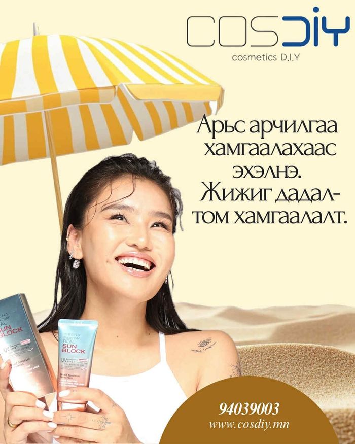 *Арьс арчилгааны хамгийн сүүлийн шатанд, гадагш гарахаас 20-30 минутын өмнө хангалттай хэмжээгээр авч, нүүр, хүзүү болон нарны тусгал ихээр тусдаг биеийн хэсгүүдэд жигд түрхэнэ