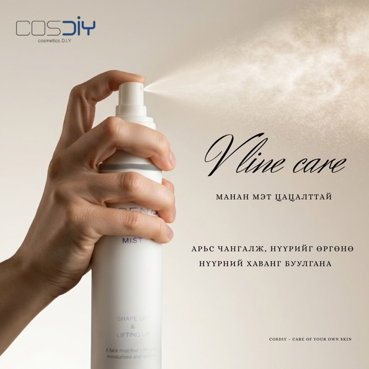 Нүүрний хэлбэрийг өргөж чийгшүүлэх үйлчилгээтэй манан мэт маш нарийн хөнгөн бүтэц цацалттай